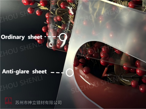 This anti glare/anti reflective hardened plexiglass (DLAG/001) adopts the nano formula coating process unique to Suzhou Shenli, which produces a polymer anti glare layer on the surface of the substrate, reducing the strong reflection and ghosting caused by reflected light on the surface of the board, thereby improving the display effect of the board as a screen or protective cover, reducing the interference of light on visual inspection, and also having the function of dispersing light sources. Make the image clearer, more realistic, and stable, reduce the interference of ambient light on the screen, and improve the angle and brightness of the displayed image.